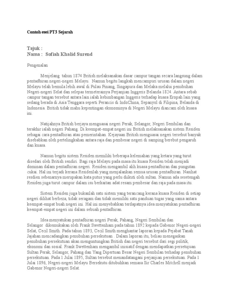 Contoh Esei Sejarah / Contoh Soalan Esei Sejarah Tingkatan 4 Bab 1 Asundlogokg